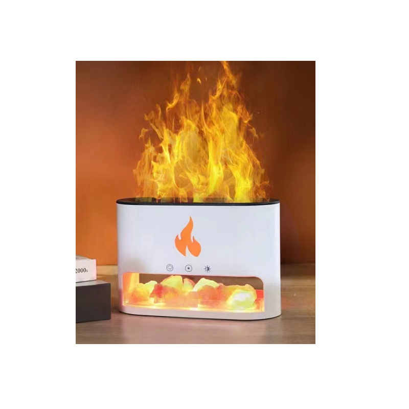 bryłki soli himalajskiej (zawarte w zestawie) a także tworzy efekt wizualny płomienia.