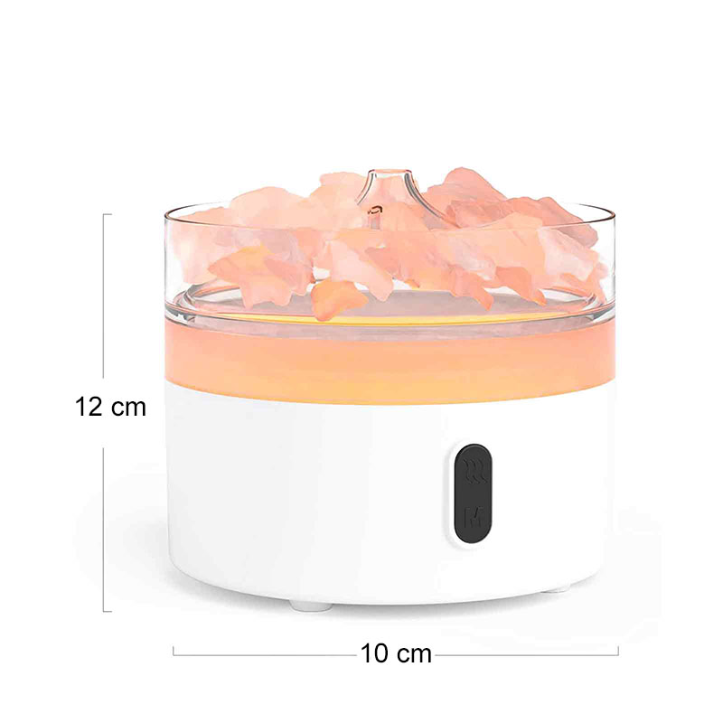 Ultradźwiękowy nawilżacz powietrza USB - Ciepłe światło. Nowoczesny dyfuzor zapachowy, który pozwala na uzyskanie efektu płomieni poprzez podświetlenie specjalnej komory, w której znajduje się sól. Wystarczy dodać trochę wody i ulubionego