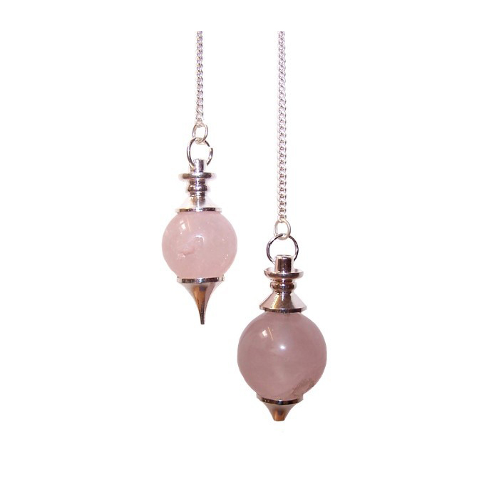 Wahadło radiestezyjne kuliste - Kwarc Różowy. Wymiary 2 x 1 cm. Łańcuszek 17 cm. Wahadło sferyczne, znane również jako wahadło sferyczne lub wahadło stożkowe, jest układem fizycznym składającym się z masy (zwykle kuli) przymocowanej do stałego punktu za pomocą sznurka lub pręta. Masa może swobodnie kołysać się w dwuwymiarowej płaszczyźnie, tworząc kształt stożka.
