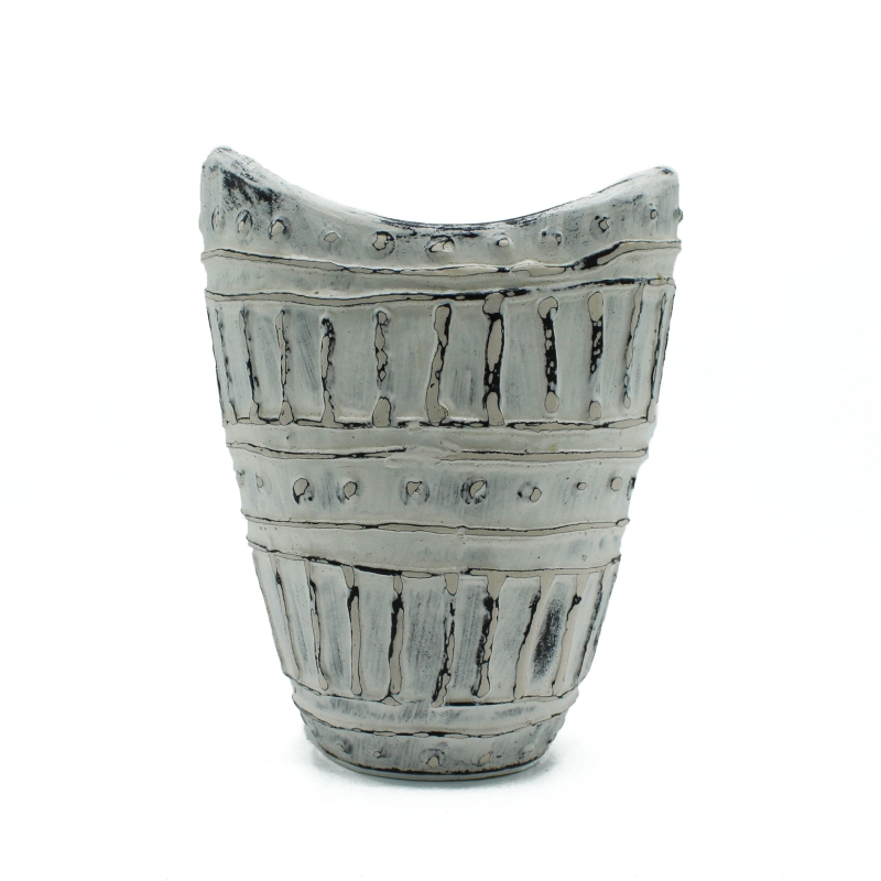 To ręcznie wykonane arcydzieło z malowniczej wyspy Lombok harmonijnie łączy tradycję z artystycznym kunsztem. Inspirowany klasycznym greckim stylem, wazon zachwyca nowoczesną elegancją, a subtelny wzór w paski i kropki dodaje mu minimalistycznego uroku, świetnie współgrając z różnymi roślinami.