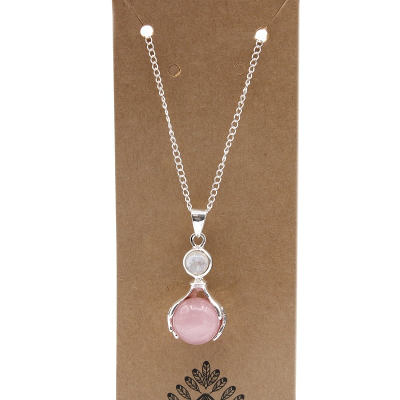Wisiorek z kulą - Kwarc Różowy. Wymiary wisiorka 3,5 x 2 x 2 cm. Pięknie rzeźbione wisiorki z kamieni szlachetnych wraz z dołączonym posrebrzanym łańcuszkiem o długości