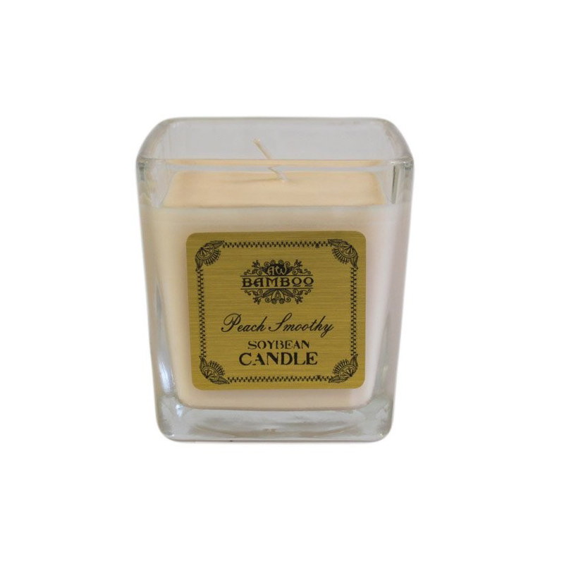 Zapachowa świeca sojowa - Brzoskwinia. Wymiary 7 x 7 x 8 cm. Doskonała seria świec zapachowych umieszczonych w dużych, szklanych pojemnikach z recyklingu. Wykonana z