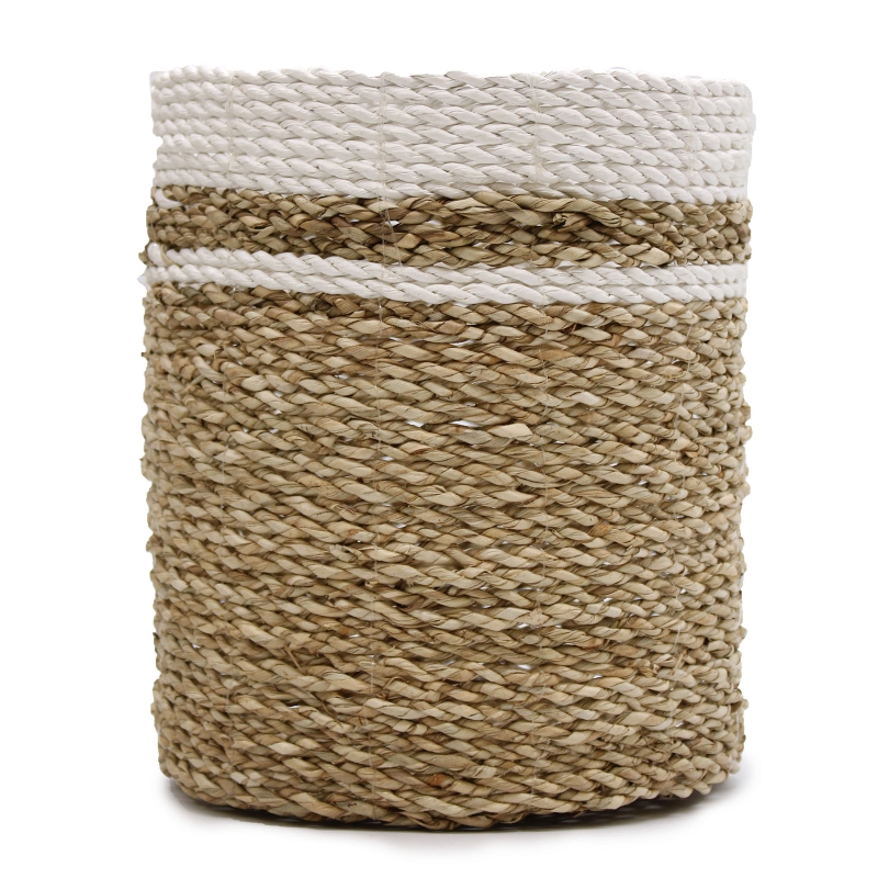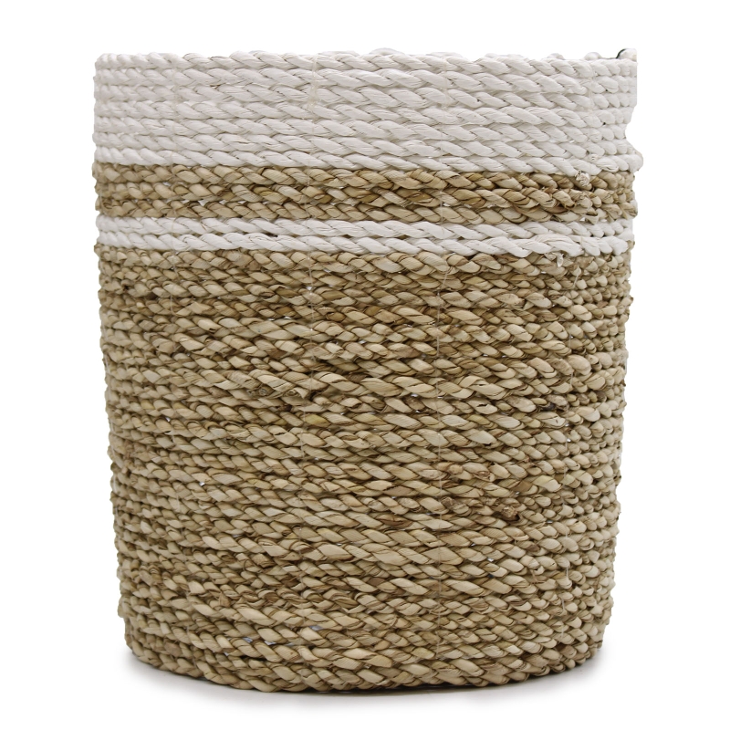 przyjazne dla środowiska materiały, szeroko stosowane w rzemiośle oraz dekoracji wnętrz. Liście bananowca zapewniają koszom solidność i stabilność, a trawa morska dodaje im subtelnej faktury, podkreślając ich naturalny styl.